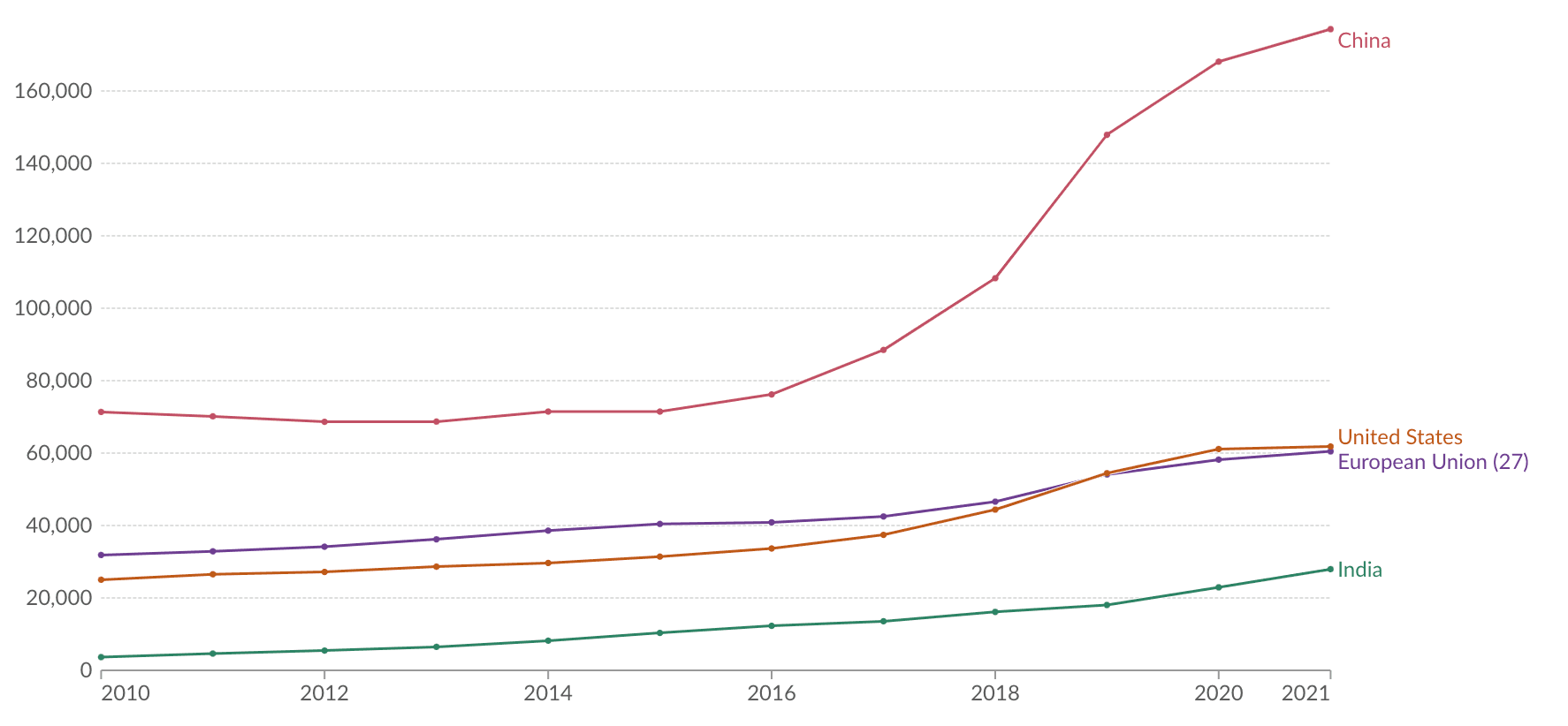 Europe is second only to China in AI research in absolute terms and second only to US in terms of population.